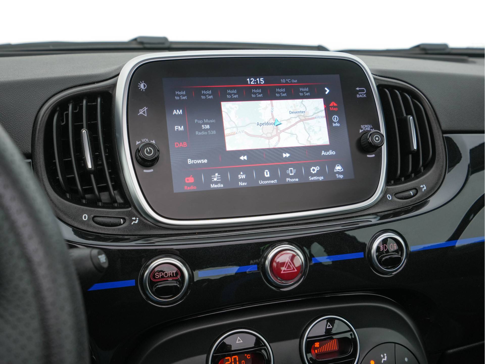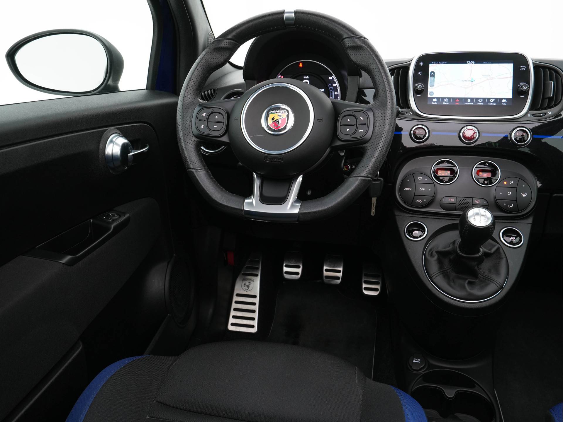 ✔ Interieurdetails: Naast de unieke zwart-blauwe stoffen bekleding , heeft de autoa speciale logo (zoals het Monster Energy Yamaha MotoGP-logo op het startscherm van het infotainmentsysteem) en het Abarth Telemetriesysteem om prestaties te meten.