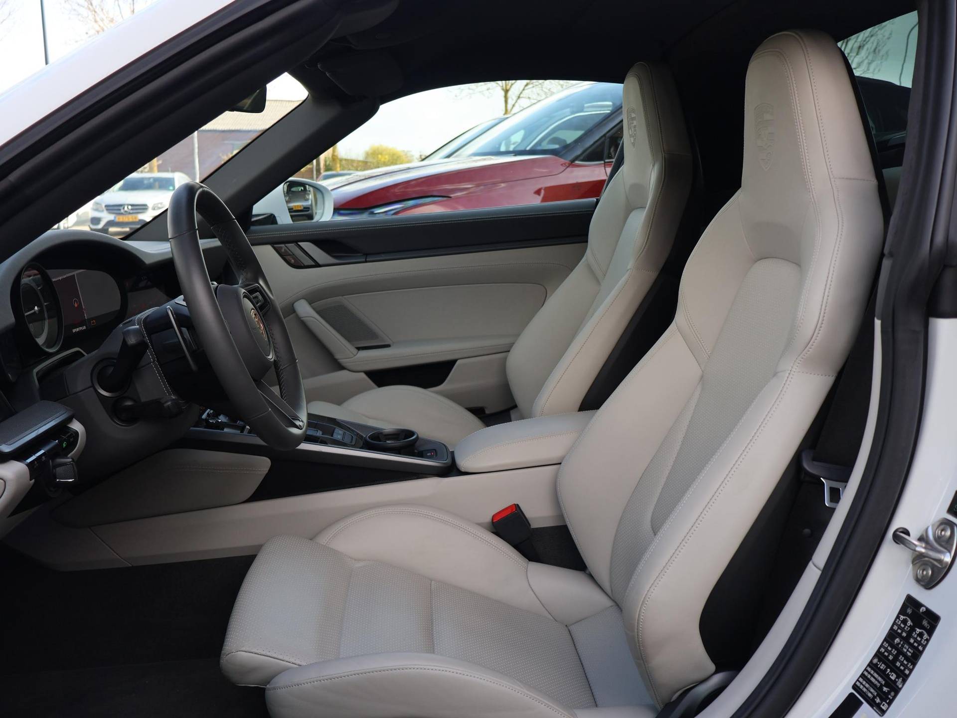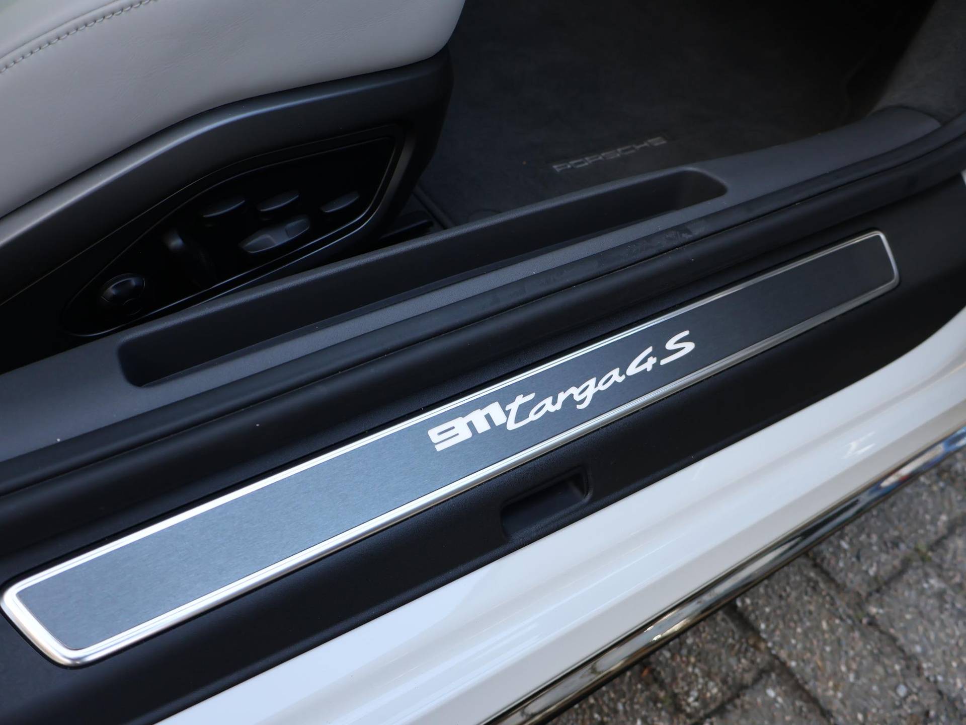 Origineel Nederlandse 992 911 Targa 3.0 4S 450 PK PDK automaat in het Carrarawit metallic met Leisteen Grijs met Krijt leder interieur, Vierwielaandrijving, Slechts 17.981 km gereden, Sportuitlaat origineel vanaf fabriek, 360 graden camerasysteem, SportDesign bumpers met afwerking in hoogglans zwart, Bose premium sound, Sport Chronopakket, Lederen interieurdelen, Sfeerverlichting interieur, 20 inch lichtmetalen velgen breedset (305 achter, 245 voor), Verwarmd stuurwiel, Rode remklauwen, Donker glas achter, Full LED koplampen, Draadloze Apple Carplay / Android Auto appstreaming Google Maps, Flitsmeister, Whatsapp etc, DAB+ Digitale radio, PASM adaptief onderstel, Cruise control, Deels digitale cockpit met navigatie kaartweergave, Navigatie breedbeeld touch-screen, Stoelverwarming, Elektrische stoelverstelling met geheugen, Parkeersensoren, Climate control, Elektrische spoiler, Porsche projectie op de straat, Zwart/grijs logo voor.
